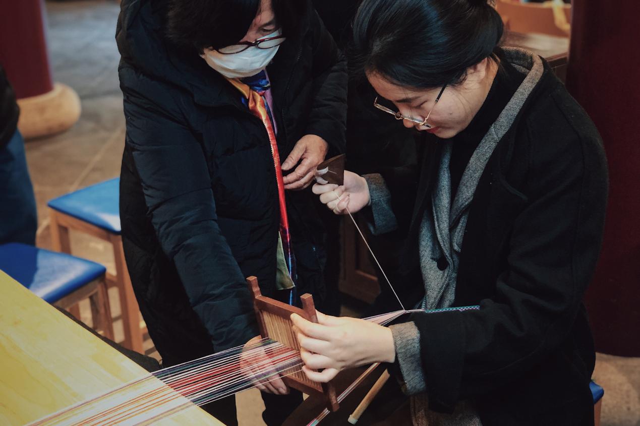 20201227上午,《性别与民俗》课程师生前往黄道婆纪念馆参观学习并体验上海传统花带制作工艺。